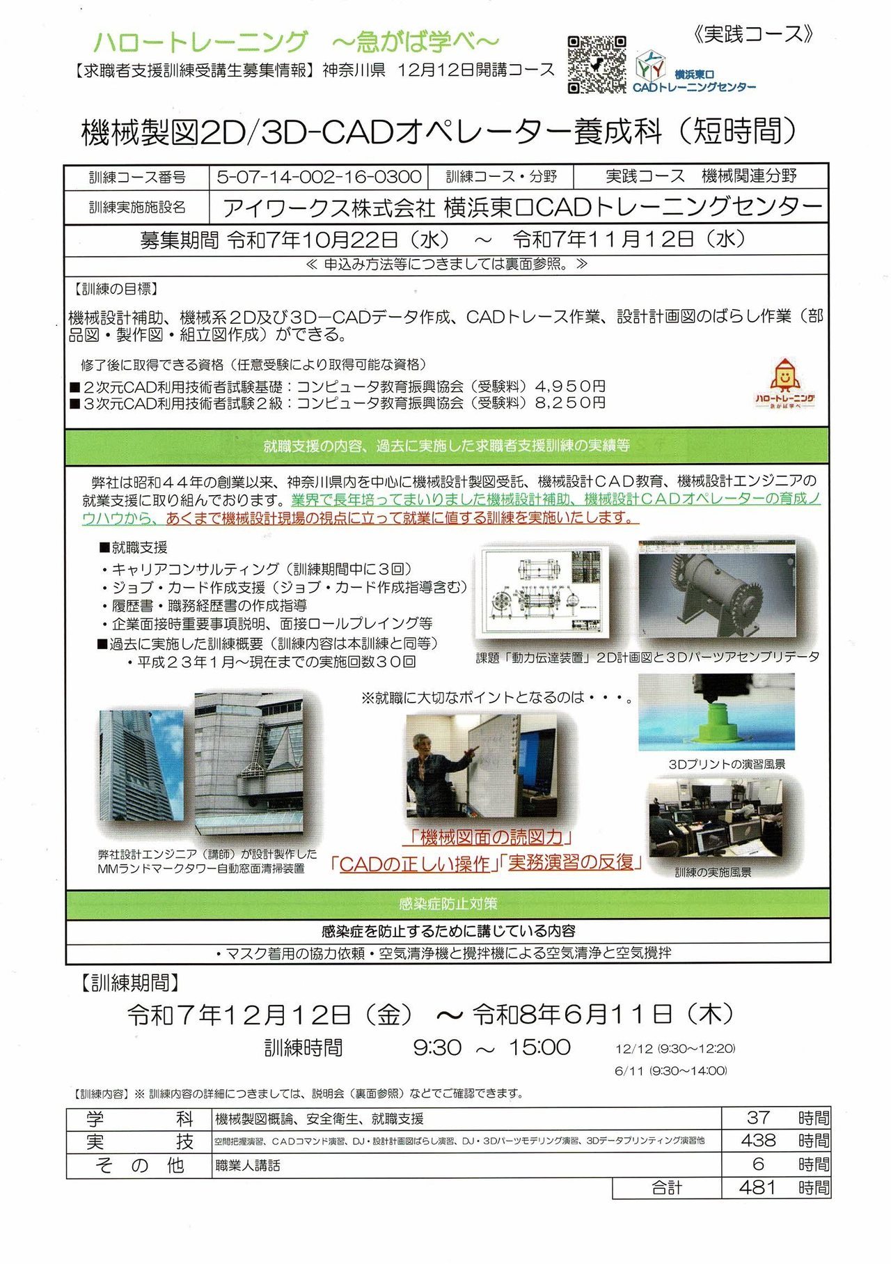 【求職者支援訓練12月12日開講6カ月実践コース】