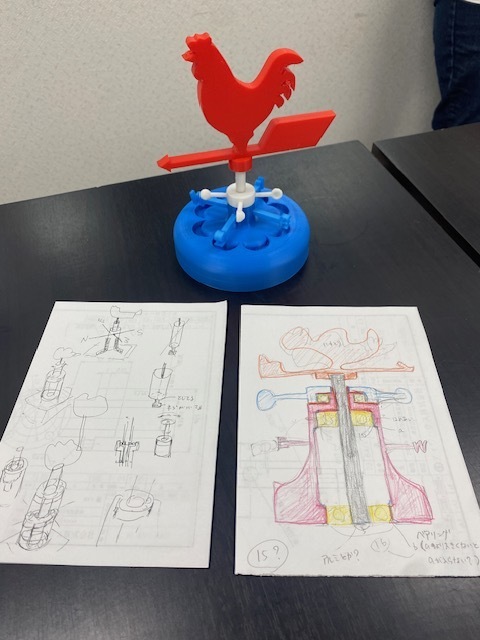 課題構造品の各部品を担当ごとに3Dモデリングしたものを3Dプリントしできた実物を組み合わせ完成させます。